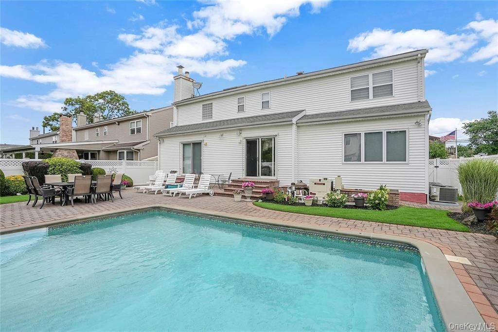 Welcome to 132 Atlantic Ave in Massapequa Park-a resort-style property designed for both everyday comfort and standout entertaining. This 4-bedroom, 3.5-bath home offers over 2,300 square feet of well-planned living space on a 6,000 square foot lot. Inside, you'll find thoughtful upgrades throughout, including a spacious finished basement with a separate entrance, full bath, and flexible bonus space-ideal for guests, recreation, or extended living. The primary suite offers a relaxing retreat with a jacuzzi tub, while a fireplace adds warmth and character to the main living space. An oversized hot water heater ensures convenience, and multi-zone air conditioning keeps the home comfortable year-round. Step outside to your private backyard oasis featuring a heated in-ground pool and plenty of space to host or unwind. Additional upgrades include updated stonework, dual oil tanks, full-house water filtration, and built-in safety features like water sensors and overflow drains. This is a well-maintained home located near parks, local dining, shopping, and the LIRR, 132 Atlantic Ave offers both lifestyle and convenience in one of Massapequa Park's most desirable areas.
